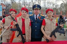 В акции Бессмертный полк наши юнармейцы были удостоины чести пройти в капсуле Президента РТ Минниханова Р.Н.