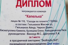 Поздравляем учащихся 3 "А" класса , занявших первое место в праздничной викторине "ЭкоКлуба 5х5", посвященной международному Дню воды.