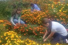 Ребята с цветами в руках,