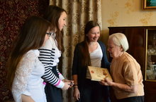В феврале 2015 года наш лицей помогал ветерану Вов Порсевой Софии Яковлевне в оформлении документов для участия в конкурсе «Женщина года. Мужчина года: женский взгляд» в номинации «Героиня третьего возраста». Зам. Директора по ВР Угляница Инна Николаевна взяла интервью у Софии Яковлевны, ряд фотографий, военных документов и наград. Все это было обработано, отсканировано и оформлена конкурсная папка. Учащиеся 10 а класса Таимова Гузель и Гильманова Айгуль помогали в обработке текста интервью. 5 марта Порсеву Софию Яковлевну награждали в КЦ Корстоне почетным дипломом «Женщина года. Мужчина года: женский взгляд» в номинации «Героиня третьего возраста» и ценными подарками. В процессе работы с ветераном, в архивах нашего лицея была найдена фотография 2010 года, где зам.директора по ВР Угляница Инна Николаевна награждает Софию Яковлевну юбилейной медалью 60 лет Победе. Фотографию распечатали и подарили Софии Яковлевне.
