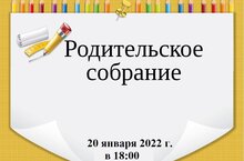 Приглашаем Вас на родительское собрание, которое состоится 20 января (четверг) в 18 часов.