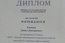 Поздравлем Епишина Данила - призера республиканской олимпиады школьников по геологии