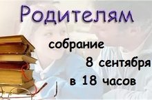 Приглашаем вас на родительское собрание, которое состоится 8 сентября в 18 часов. -