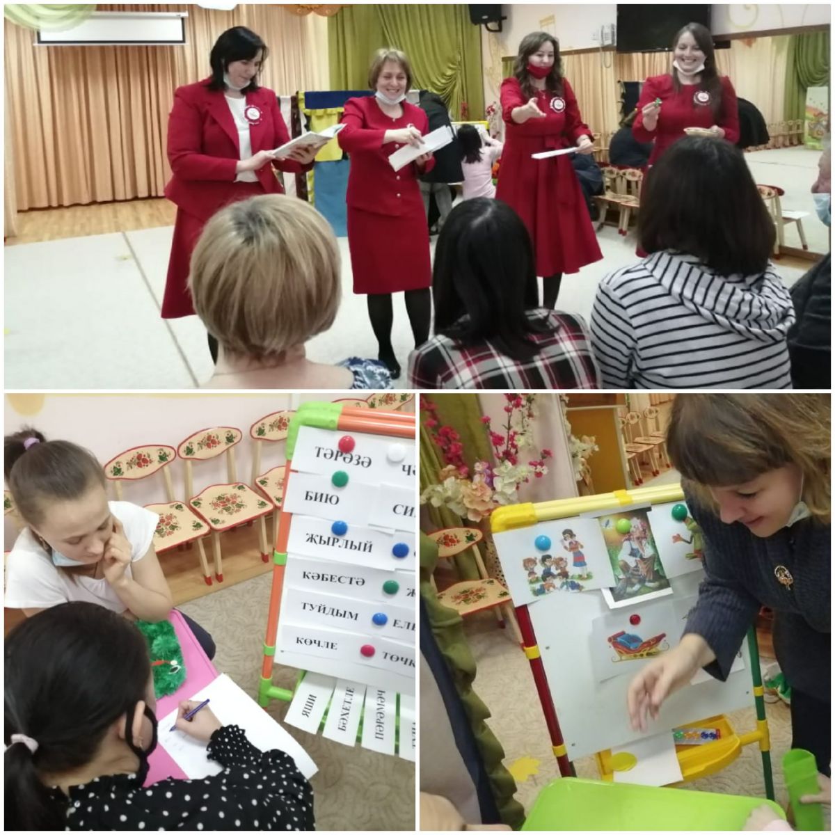 В детском саду был проведен семинар - практикум с элементами деловой игры «Применение геймификации в развитии родной речи детей дошкольного возраста» в рамках реализации инновационной площадки. Цель семинара: развитие творческого потенциала педагогов, их компетентности через знакомство с современными технологиями развития речи воспитанников учреждения; расширять знания по использованию современных технологий речевого развития воспитанников; способствовать внедрению новых технологий в образовательный процесс. Хусаинова Г.Н., Давлетшина Р.Н. и Зайнуллина А.Н. провели с педагогами деловую игру с применением геймификации в развитие родной речи посредством сказкотерапии. -