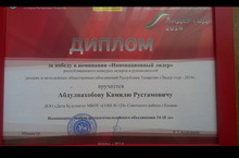 С 30 марта по 3 апреля на базе молодёжного лагеря "Волга" cоcтоялся республиканский конкурс лидеров и руководителей детских и молодёжных общественных организаций Республики Татарстан "Лидер года - 2014". В номинации лидеры детских/молодёжных объединений 14-18 лет, ученик нашей школы Абдулвахобов Камиль занял 1 место в номинации "Инновационный лидер". Мы поздравляем его с этой ПОБЕДОЙ!!!