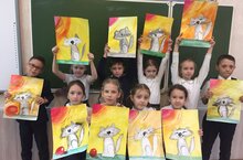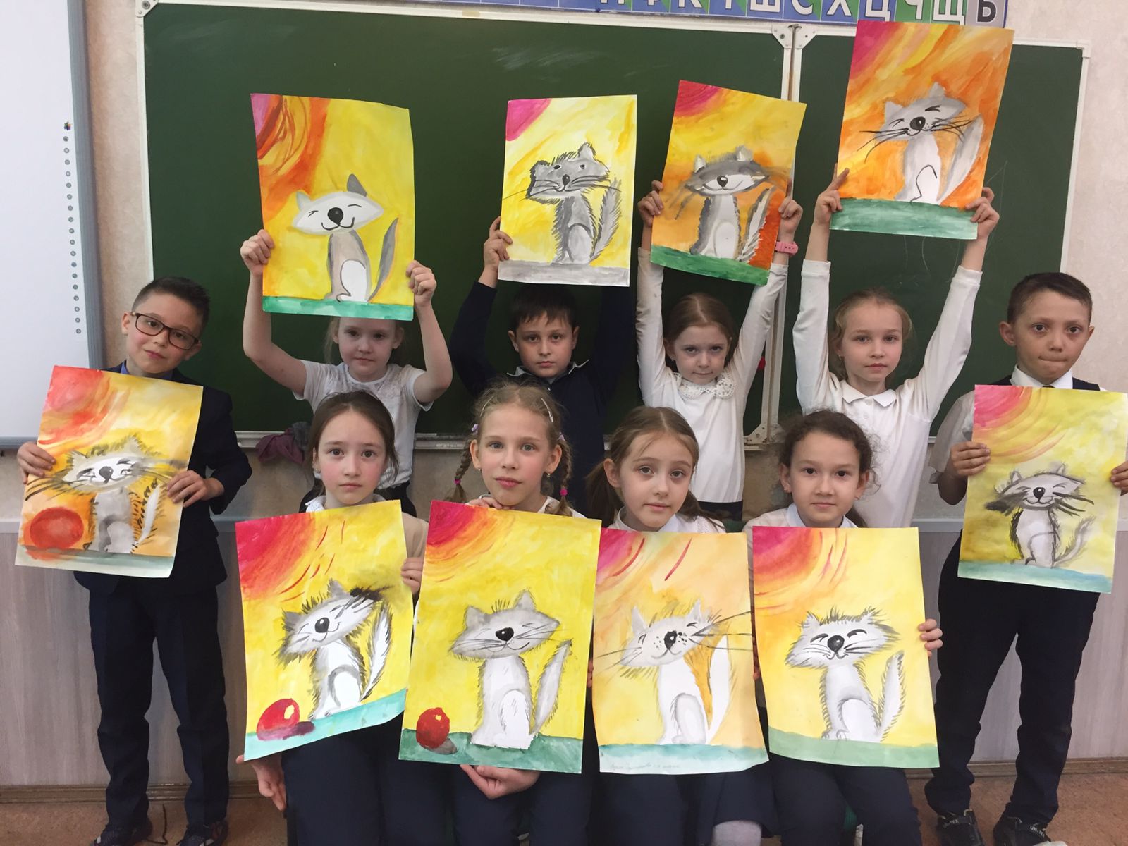 Учащиеся 2 А класса на занятиях Арт-студии воодушевлены рисованием сказочного солнечного кота. Солнечный кошачий хоровод всем дарит тепло, радость, добро и веру в чудеса.