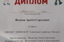 Поздравляем ученика 3Б класса Волкова Артёма с победой - I место в Межрегиональном конкурсе музыкального творчества юных исполнителей г. Чебоксары. Благодарим за подготовку педагогов ДМШ №19 Яковлеву Анну Сергеевну, Железнову Елену Александровну. Желаем дальнейших успехов и побед.