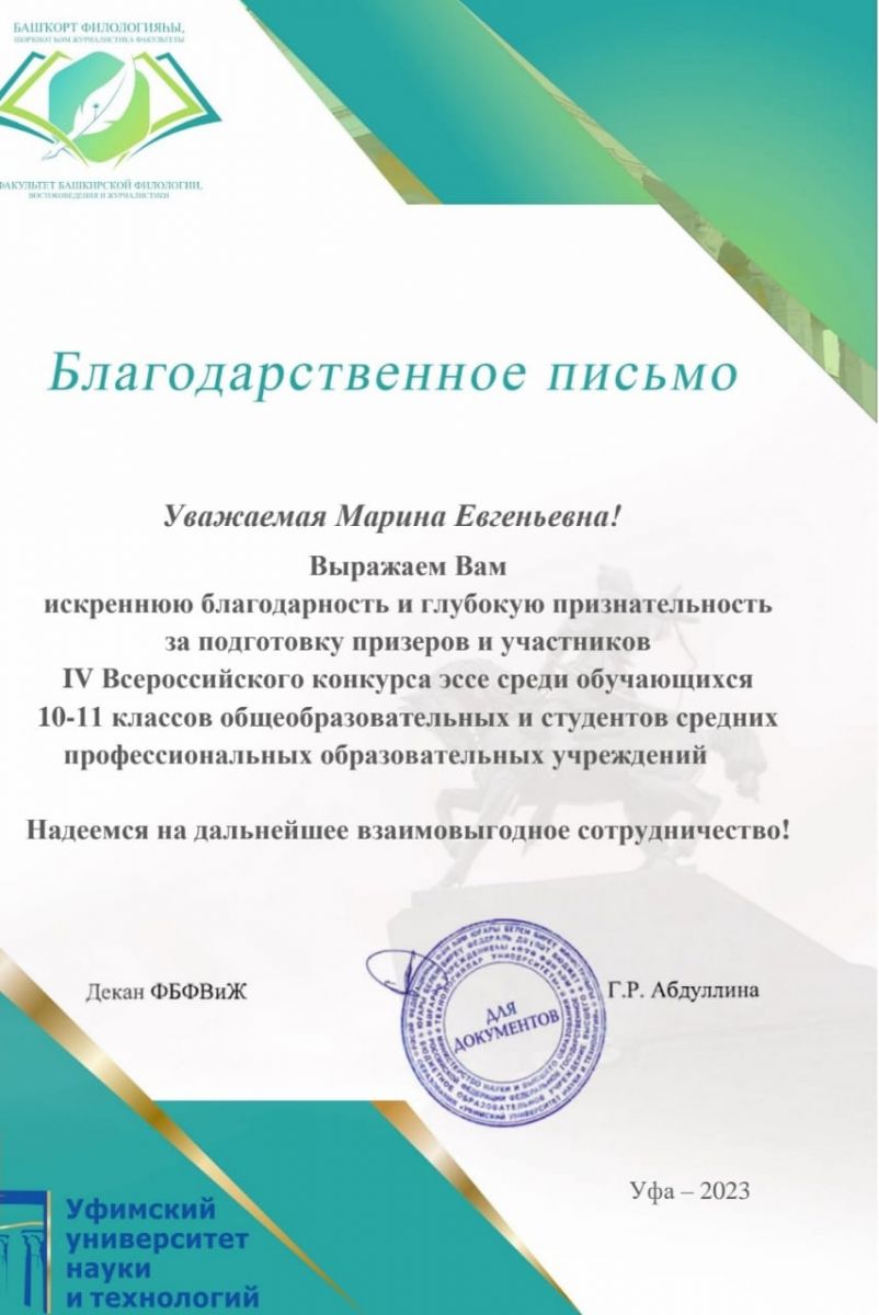 Благодарим за подготовку призеров и участников IV Всероссийского конкурса эссе учителя русского языка и литературы, Калинину Марину Евгеньевну. Желаем дальнейших успехов и творческих побед.