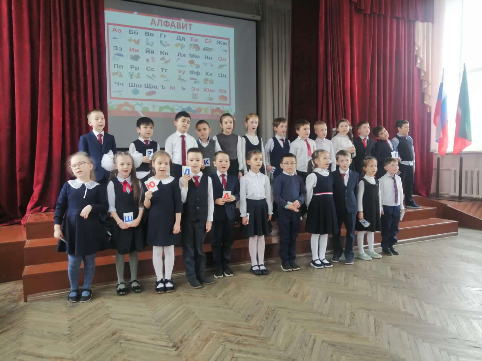 Сегодня у нас праздник. Учащиеся 1 Б класса закончили свою первую книгу – Букварь. Букварь научил ребят не только читать и писать. Он рассказал , как нужно дружить, как быть воспитанными. И ребята попрощались с верным другом Букварем. Дети рассказывали стихи, отгадывали загадки, кружилась в вальсе и пели песни. И каждый ученик в подарок получил книгу.