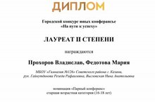 Поздравляем учащихся 10А класса, Прохорова Владислава и Федотову Марию с победой! II место в номинации "Парный конферанс". Они участники городского конкурса юных конферансье "На пути к успеху". Благодарим руководителей: Выгловскую Нину Анатольевну, Гайнутдинову Резеду Рафаилевну за подготовку. Желаем дальнейших успехов и творческих побед.
