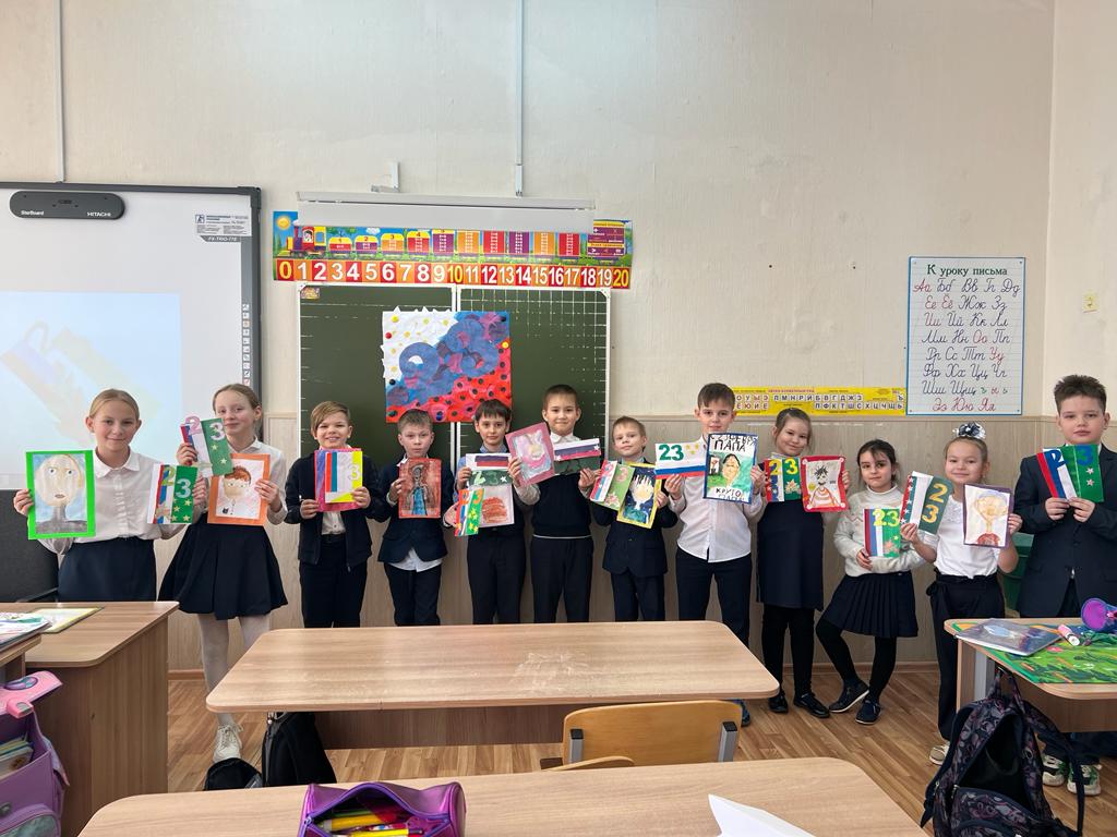По сложившейся традиции в каждом классе к 23 февраля готовятся поздравить своих пап, дедушек, братьев и конечно своих одноклассников. Рисуют открытки, читают стихи, проводят квесты, разыгрываю сценки, готовят концертные номера, дарят небольшие сувениры. 3Б класс поздравляет мальчишек