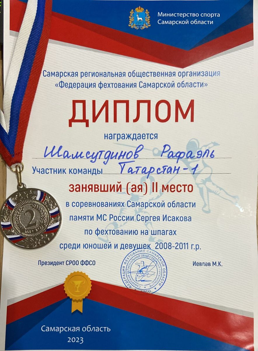 Поздравляем ученика 8 А класса, Шамсутдинова Рафаэля с победой - II место в соревнованиях по фехтованию.