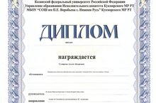 Поздравляем ученицу 9Б класса, Невмержицкую Ульяну с победой. Она призер Международной научно-образовательной конференции "Хузиахметовские чтения. Основные направления совершенствования средств и методов обучения и воспитания". Благодарим за подготовку Выгловскую Нину Анатольевну, заведующую библиотекой, Салихову Кадрию Гайнулловну, учителя начальной школы, Куликову Миньону Борисовну, учителя музыки. Желаем дальнейших успехов и побед.