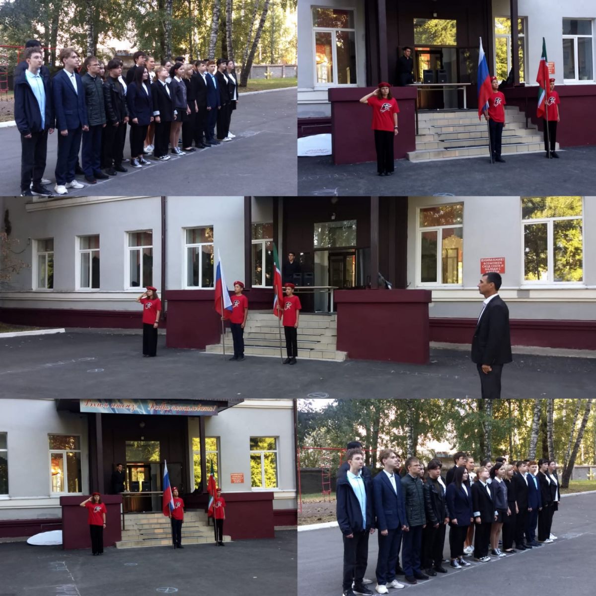 Каждый понедельник в нашей гимназии будет начинаться с построения, звучания гимнов и торжественного выноса государственных флагов России и Татарстана. Сегодня в гимназии прошло первое занятие «Разговоры о важном»!