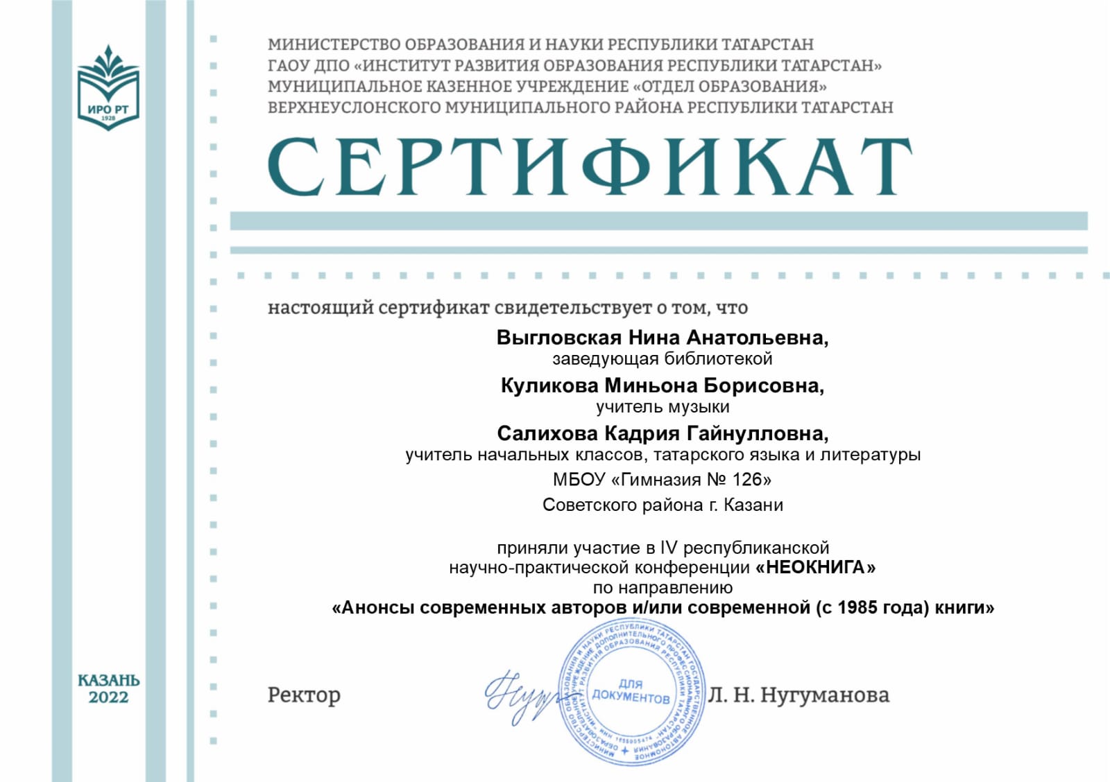 Муниципальное бюджетное общеобразовательное учреждение «Гимназия №126» Советского района г. Казани/Казан шәһәре Совет районының "126нчы гимназия" гомуми белем муниципаль бюджет учреждениесе