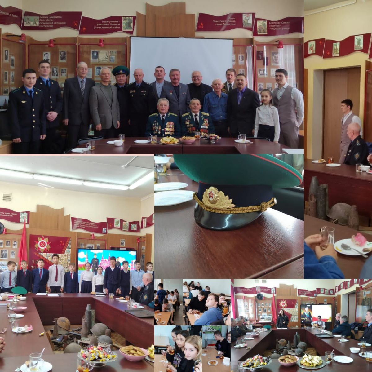Сегодня в нашей гимназии состоялась традиционная встреча с ветеранами-пограничниками на базе нашего школьного музея - Общественная организация ветеранов пограничной службы по Республике Татарстан. Урок мужества провели совместно с сотрудниками КПП Казань - аэропорт. В гостях был председатель совета ветеранов пограничной службы по Республике Татарстан полковник в отставке Каримов.Ш.З. Учащиеся организовали небольшой концерт: пели песни, рассказывали стихи, показали видеофильм.