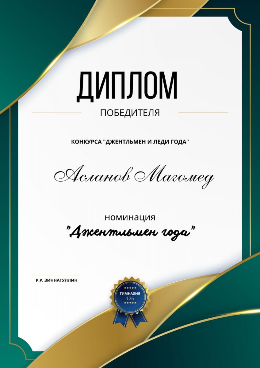 И так - Джентльмен года - Асланов Магомед, ученик 11А класса.