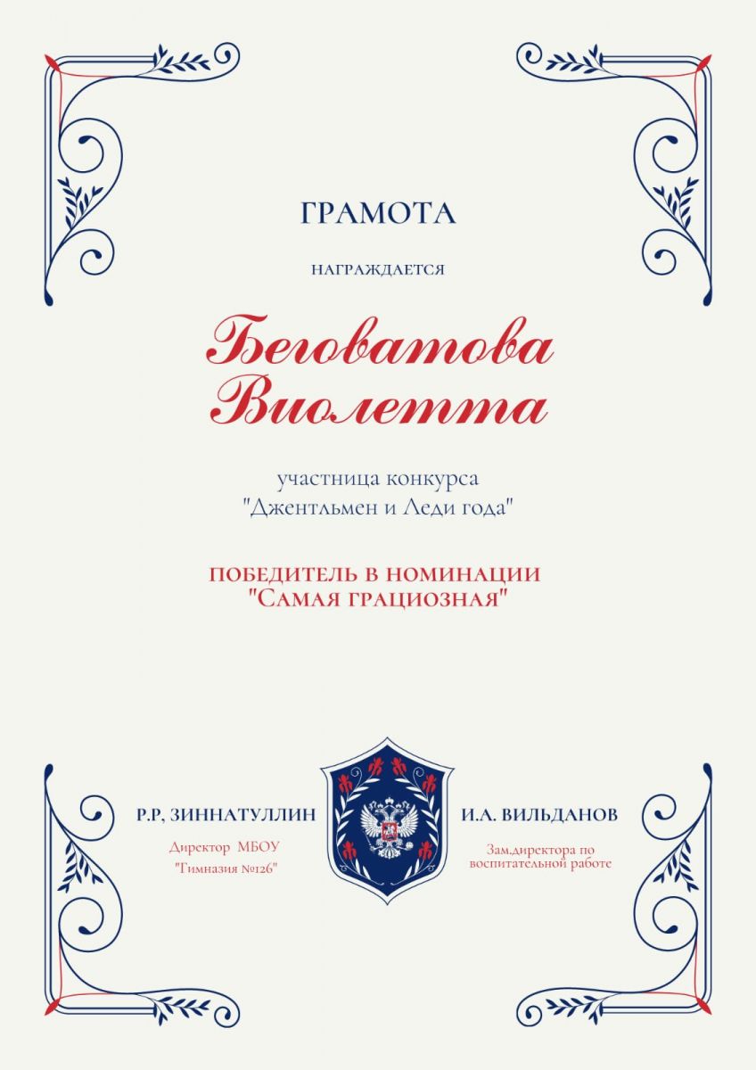 Поздравляем ученицу 9А класса, Беговатова Виолетту!