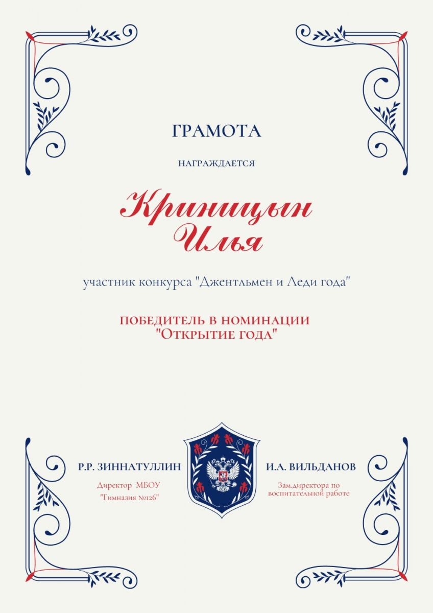 Поздравляем ученика 8 Б класса, Криницина Илью!