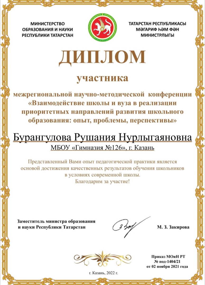 Муниципальное бюджетное общеобразовательное учреждение «Гимназия №126» Советского района г. Казани/Казан шәһәре Совет районының "126нчы гимназия" гомуми белем муниципаль бюджет учреждениесе