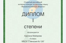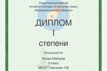 Диплом I степени в открытом российском интернет - конкурсе по русскому языку.