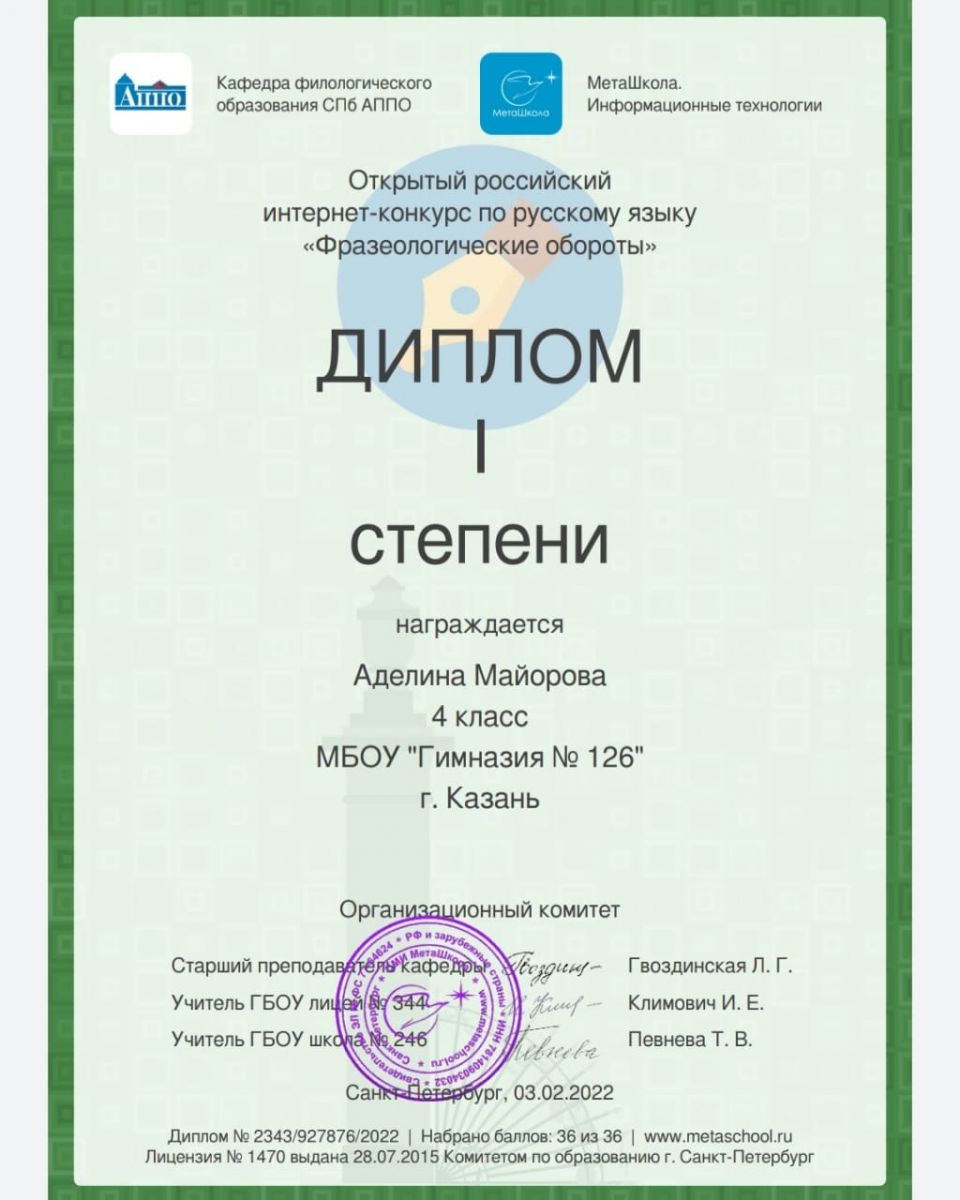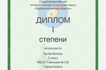 I место по русскому языку в открытом российском интернет-конкурсе.