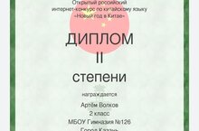 Диплом II степени в открытом российском интернет - конкурсе по китайскому языку.