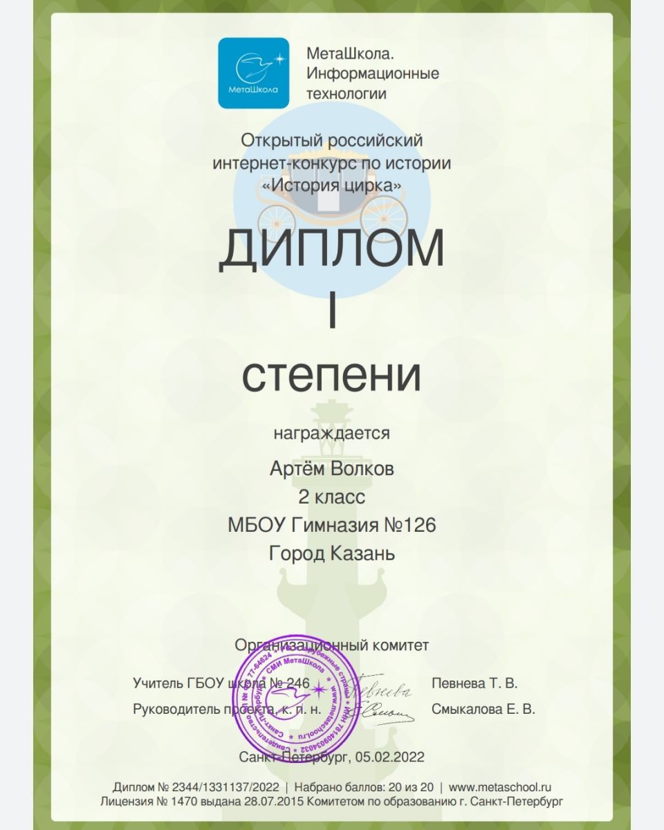 Поздравляем ученика 2Б класс Майорова Назара с победой! 06.02.2022