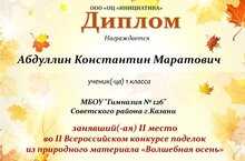 II место во II Всероссийском конкурсе поделок из природного материала «Волшебная очень».