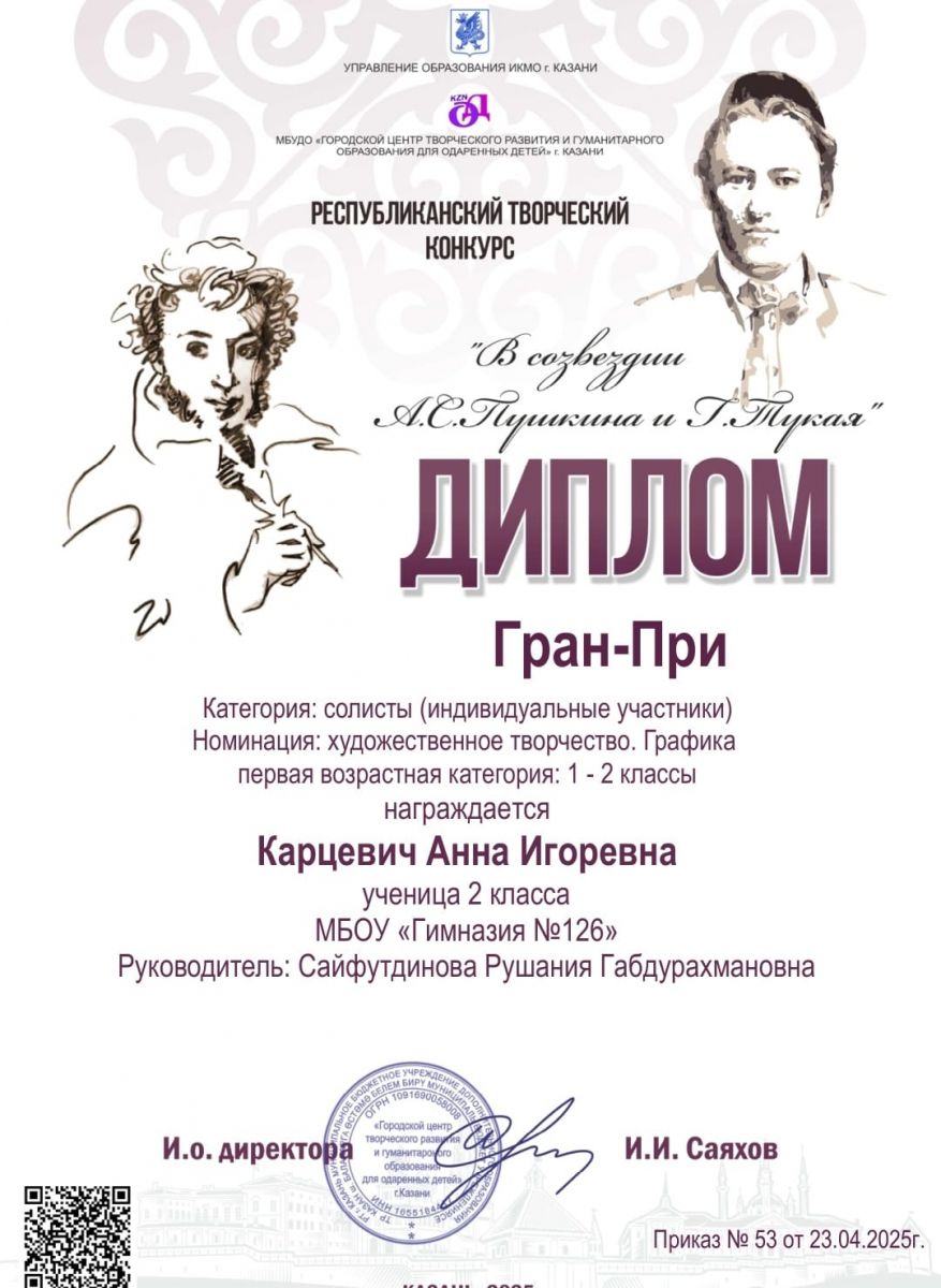 "В созвездие А. Пушкина и Г. Тукая" 25.04.2025