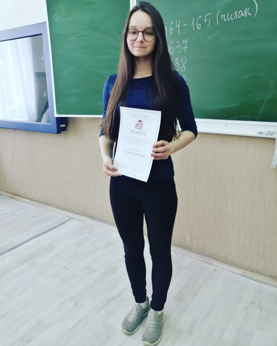 Поздравляем Капустину Евгению, ученицу 10 А класса за активное участие в работе детско-юношеского движения ТРО ВООПиК "Наследие в юном сердце". 22.04.2021.