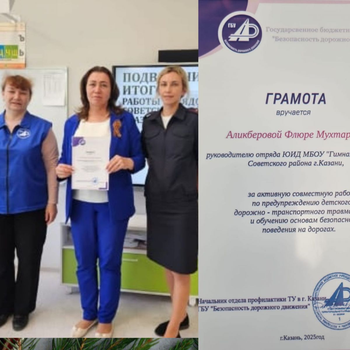 -Аликберову Флюру Мухтаровну.Грамота за активную совместную работу по предупреждение детского дорожно-транспортного травматизма и обучению основам безопасного поведения на дорогах.