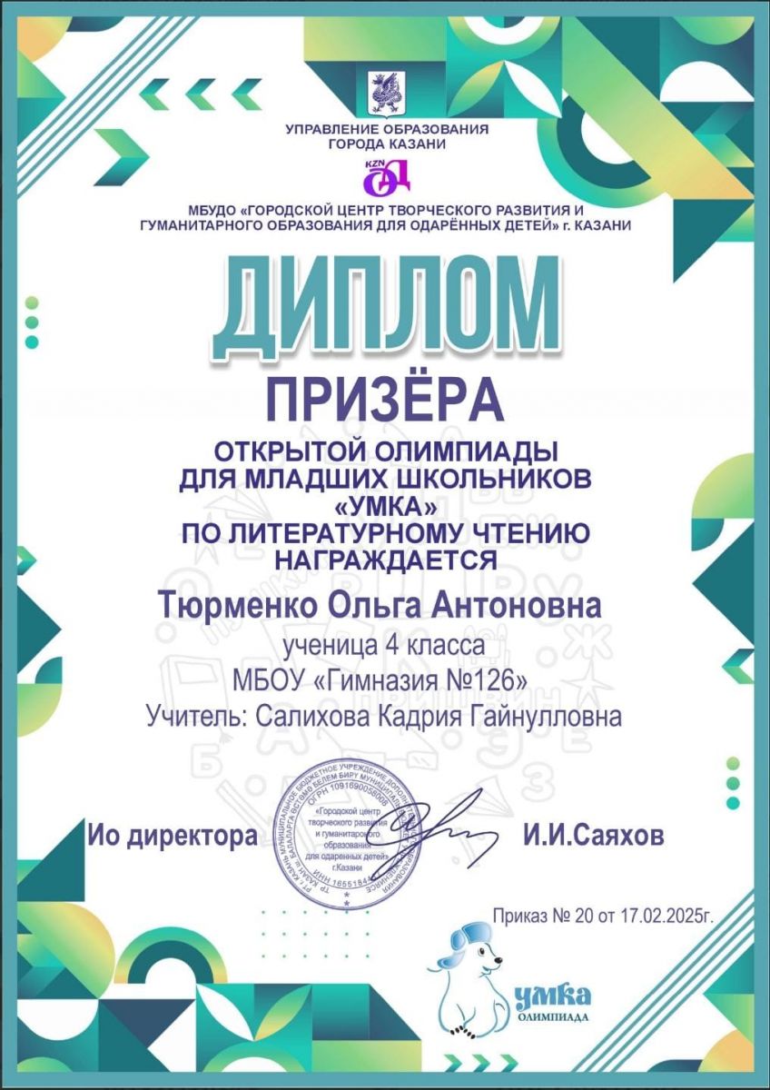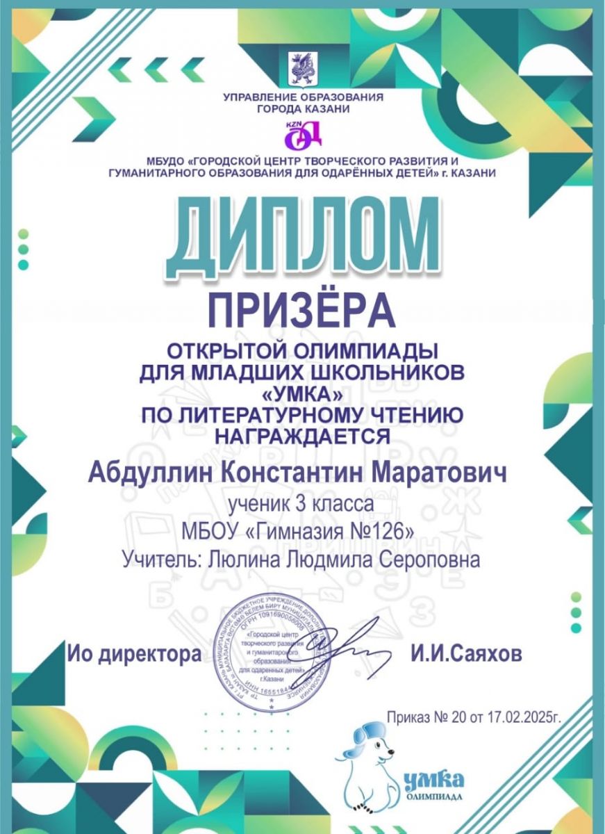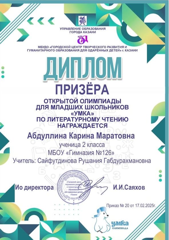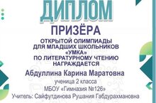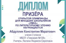с победой-Призёр открытой олимпиады для младших школьников
