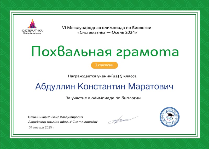 Призёр открытой олимпиады для младших школьников