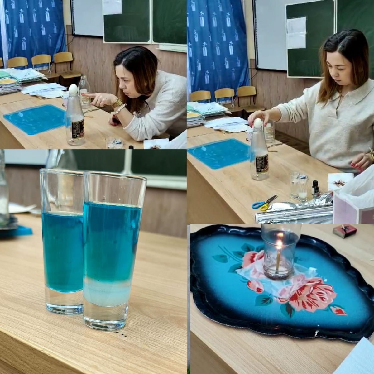 провела ребятам научные опыты и объяснила им о явлениях атмосферного давления, процессов горения и плотности жидкостей. -