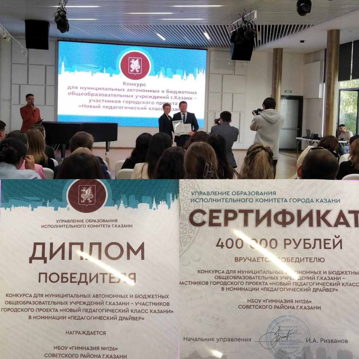 Диплом Победителя и Сертификат на 400 000 рублей. -
