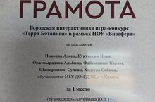 Поздравляем наших учащихся с победой! Награда нашла героев! В экологической игре "Терра Ботаника" в рамках НОУ БИОСФЕРА в городском детском эколого-биологическом центре команда нашей гимназии получила I место. Попова Вероника 9А класс, Оразмырадова Альбина 8А класс, Файзыханов Карим, 5А класс, Шакирзянов Султан, 6 Б класс, Хадеева Сабина 5Б класс. Благодарим за подготовку преподавателя МБУ ДО "ГДЭБЦ" Ануфриеву Юлию Владимировну. Желаем дальнейших успехов и творческих побед.
