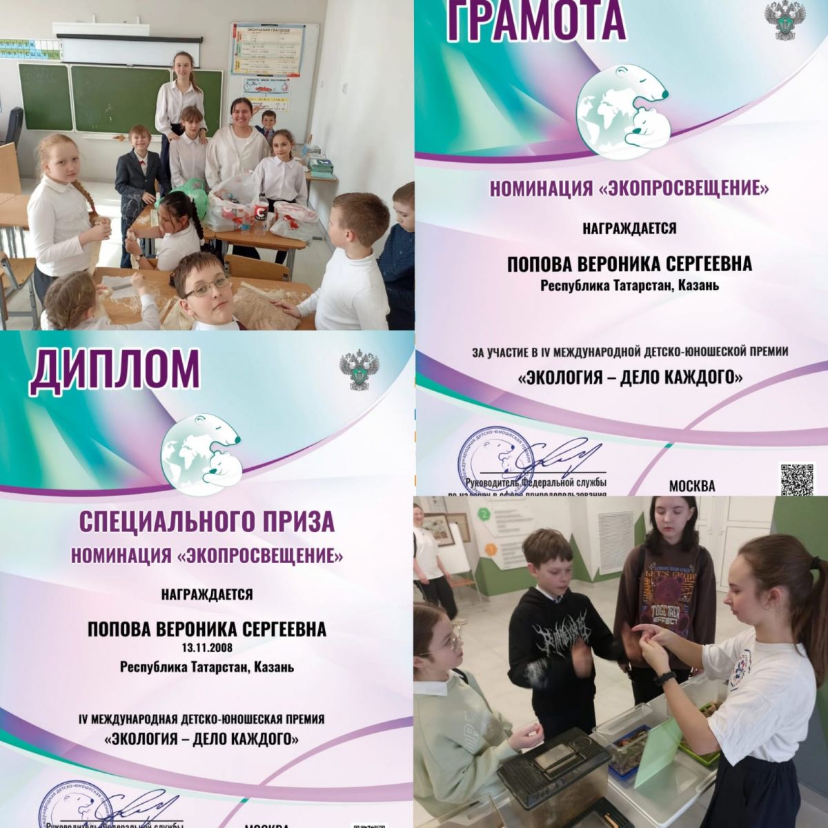 Независимо от того, в какой точке нашей огромной планеты ты живешь — научи весь мир заботе о своем доме! Стань лучше простого потребителя, стань больше спокойного наблюдателя — будь участником борьбы за свою здоровую планету! "Экология – дело каждого" – это премия Росприроднадзора за интересные, нестандартные, креативные идеи, инициативы, выдающиеся проекты, посвященные сохранению окружающей среды, бережному отношению к природе, экологическому просвещению и популяризации экокультуры. ДОКАЖИ: ТВОЕ ПОКОЛЕНИЕ – ДРУГОЕ! ПОКАЖИ ПРИМЕР! ТЫ ЗДЕСЬ НЕ СЛУЧАЙНО! ВРЕМЯ ДЕЙСТВОВАТЬ НАСТАЛО! - таков посыл молодому поколению! И ученица 9 А класса Попова Вероника рискнула и доказала, приняв участие в Международной детской премии "Экология - дело каждого"... ЧИТАТЬ ДАЛЕЕ