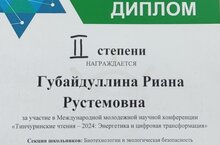 Поздравляем ученицу 10А класса, Губайдуллину Риану с победой! Диплом II степени в Международной молодёжной научной конференции "Тинчуринские чтения-2024". Благодартм за подготовку учителя биологии Гайнутдинову Резеду Рафаиловну. Желаем дальнейших научных исследований и побед.