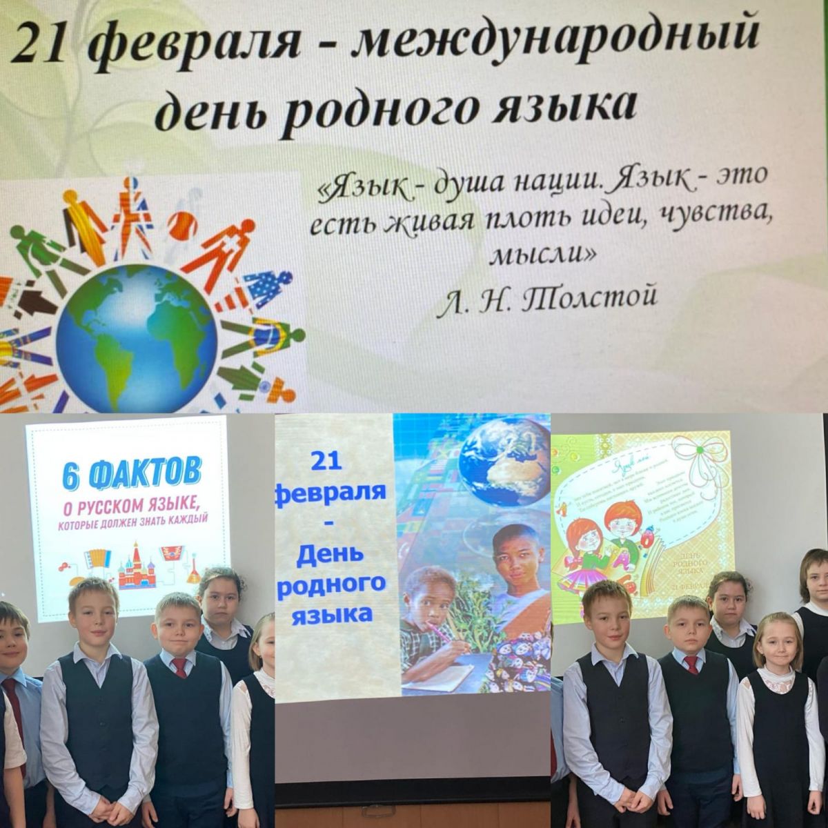 Вот уже 25 лет 21 февраля отмечается день родного языка. «Бессмертие народа — в его языке», — сказал писатель Чингиз Айтматов. Язык этноса помогает сохранять его историю и культуру, традиции и бытовой уклад. И сегодня учитель русского языка Васильева Алёна Анатольевна для учащихся 5 "В" класса провела урок-викторину "Знатоки родного языка". Каждая команда достойно справилась со всеми заданиями. Учащиеся были рады тому, что узнали много интересных фактов о своём родном русском языке.