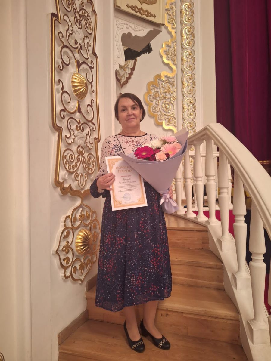 Поздравляем учителя музыки Куликову Миньону Борисовну! Награждена Почетной грамотой Министерства просвещения Российской Федерации за многолетний добросовестный труд и значительные заслуги в сфере образования. Желаем дальнейших успехов и неисчерпаемой энергии.