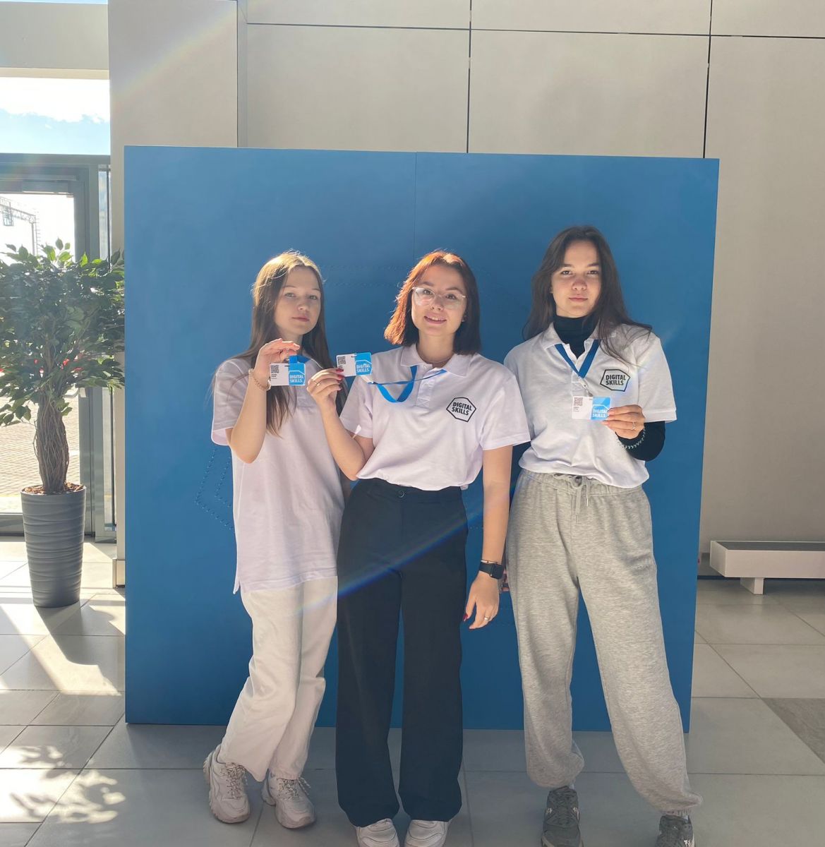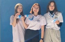 Ученицы 10А класса Ганеева Камила, Ахатова Камилла, Кряжева Екатерина работают волонтёрами на чемпионате в сфере цифровых технологий " Digital Skills"