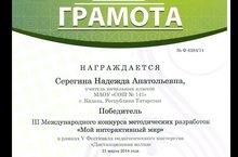 Поздравляем Надежду Анатольевну Серегину, учителя начальных классов, с победой в III Международном конкурсе методических разработок "Мой интерактивный мир".