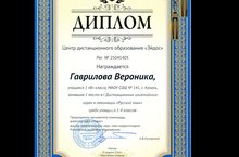 Поздравляем ученицу 1 класса "В" Гаврилову Веронику с победой в I олимпийских играх (Всероссийские эвристические олимпиады), проводимых центром дистанционного образования "Эйдос" г. Москва.