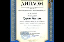 Поздравляем ученика 1 класса "В" Трухина Максима с победой в I олимпийских играх (Всероссийские эвристические олимпиады), проводимых центром дистанционного образования "Эйдос" г. Москва.