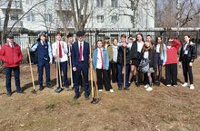 Трудовой десант гимназии 141 начал благоустраивать территорию после зимних месяцев. Весна. Хочется чистоты и красоты.