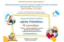 19 сентября будет дан старт международному празднику «ДЕНЬ УЧЕНИКА», первому в этом учебном году сетевому событию, чтобы дать возможность каждому школьнику в этот день почувствовать, что Ученик – главная профессия в жизни.