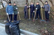 Трудовой десант учащихся гимназии вышел на уборку территории.