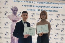 Поздравляем призеров VII Всероссийской (с международным участием) научной конференции учащихся имени Н.И.Лобачевского: Исаеву Злату, ученицу 8б класса (диплом II степени, науч.руководитель Гареева Э. Р.) и Савельева Илью, ученика 7г класса (диплом III степени, науч. руководитель Идиятова А. В.).