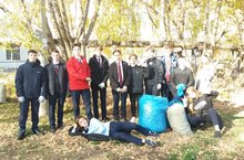 Трудовой десант гимназии на уборке территории.